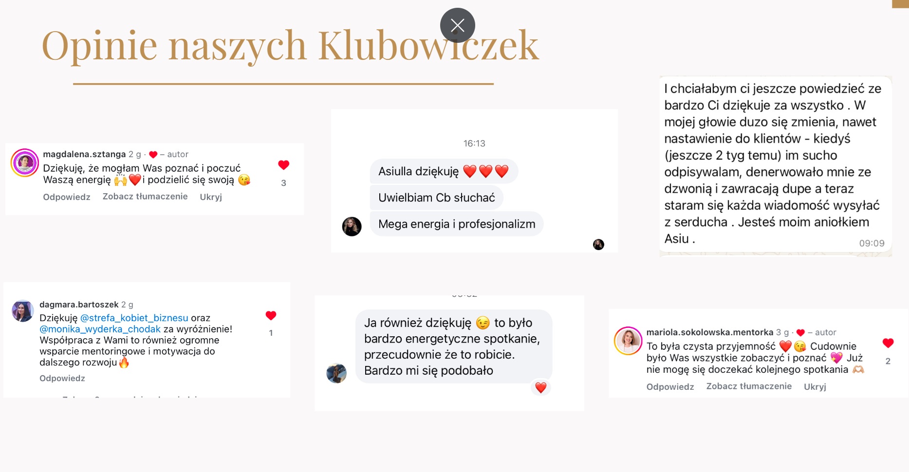 *Powyższe opinie są prezentowane przez moje klientki i za ich zgodą.